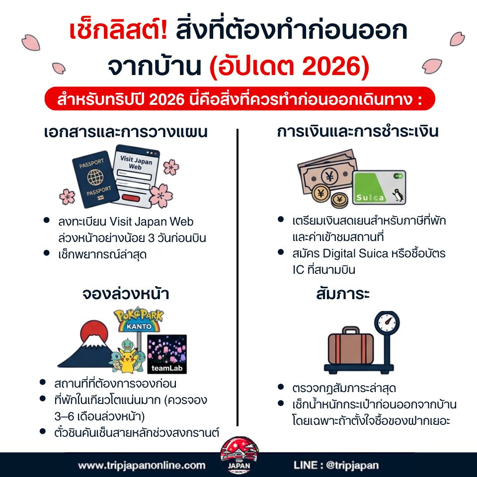 ญี่ปุ่นยังคงอันดับ 1 ในใจคนไทยไม่เปลี่ยน แต่ถ้าคุณกำลังจะไป คุณต้องอ่าน! อัปเดตเที่ยวญี่ปุ่น ปี 2026 ครั้งนี้มีอะไรใหม่เยอะมากกว่าปีที่ผ่านมาอย่างเห็นได้ชัด ทั้งกฎที่เปลี่ยน ราคาที่ปรับ และมาตรการใหม่ที่ส่งผลตรง ๆ ต่อนักท่องเที่ยวทุกคน หากคุณวางแผนเที่ยวญี่ปุ่นด้วยตัวเองในปี 2026 นี้ บทความนี้รวมทุกเรื่องที่ต้องรู้ไว้ในที่เดียว เพื่อให้ทริปของคุณง่ายมากขึ้นตั้งแต่ก้าวแรกออกจากบ้านจนกลับถึงไทย